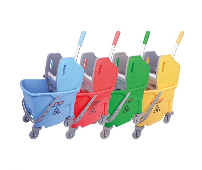 This Mop bucket holds 25 Litres and offers a unique curved polypropylene body which aids to avoid water spillage.